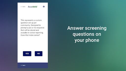 Accushield Mobile is a key tool for enhancing safety and security at senior living communities and skilled nursing facilities. Designed for staff, healthcare providers, family members, and guests, the app works seamlessly with the Accushield Kiosk to provide a fast, touchless sign-in and screening process. It allows users to verify required documentation, scan their temperature, and check in and out without physical contact with the kiosk. The app also provides real-time updates on safety protocols and allows for a customer satisfaction survey after visits.
