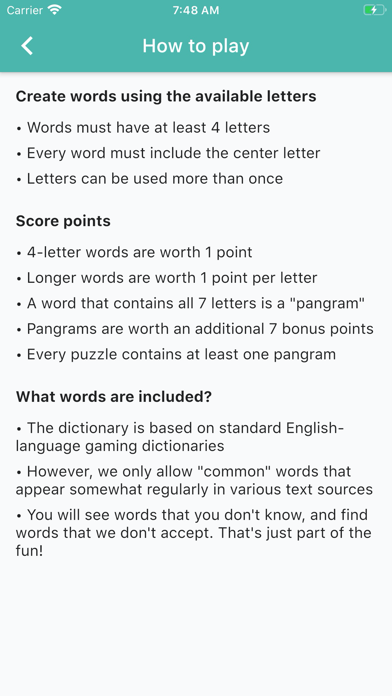 Pangrams is an engaging word game that challenges players to find unique and creative words using a set of letters. This game captivates with its mix of brain-teasing puzzles and linguistic prowess, appealing to both casual players and word game enthusiasts. Featuring a simple yet addictive concept, Pangrams offers endless hours of fun while boosting your vocabulary and problem-solving skills.
