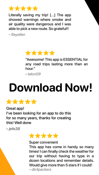 Weather on the Way is a must-have travel app that provides real-time weather updates tailored for your journey. With its seamless integration of travel plans and weather forecasts, you can navigate through any route with confidence. Experience advantages like precise weather predictions, route optimization, and travel alerts. This is your go-to app for hassle-free travel, combining up-to-date weather information with your travel itinerary.