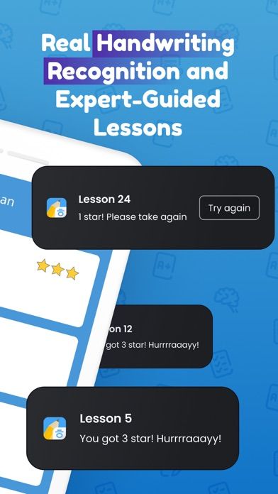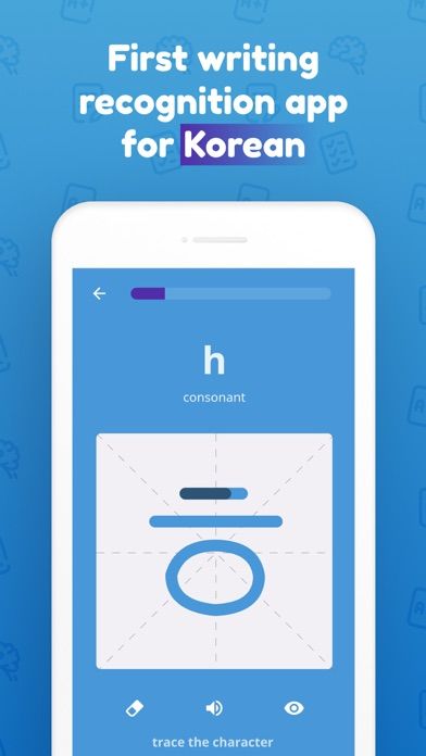 Learn to recognize Korean characters with guided tutorials. Practice writing characters using intuitive touch controls. Strengthen your skills through diverse challenges and quizzes. Track your progress and set personalized goals for improvement. Engage in daily exercises to reinforce retention and mastery.